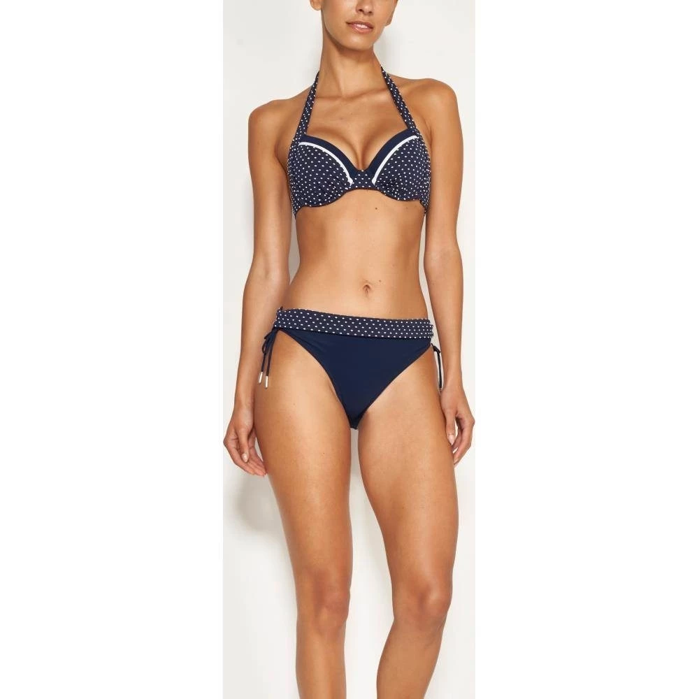 LIDEA Just fits! Bademode für perfekte Tuchfühlung mit dem eigenen Körper – in den Cup-Größen A bis H, für jede Kurvenprägung, bei jeder Bewegung dank Support Level light, medium oder extra. Ein Tag am Meer verspricht Freiheit. Die feinen weißen Punkte mit softer Haptik wirken im Zusammenspiel mit Navy immer feminin, während weiße Kontrastlinien Klarheit in den dreidimensionalen Look bringen. Der zarten Strukturware verleiht der kühle Griff der Mikrofaser sportliche Frische.