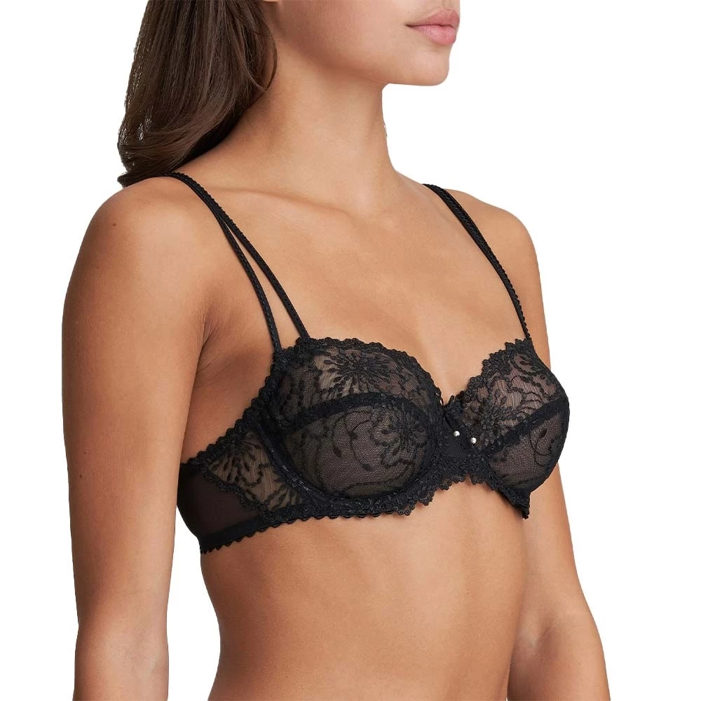Der Balconette-BH ist pure Sinnlichkeit. Dieses Modell enthüllt mehr Dekolleté. Die Stickerei ziert den ganzen Cup und wirkt bezaubernd. Die dünnen Träger vervollständigen das raffinierte Design. SCHWARZ: Eleganter geht nicht … und zudem verführerisch!