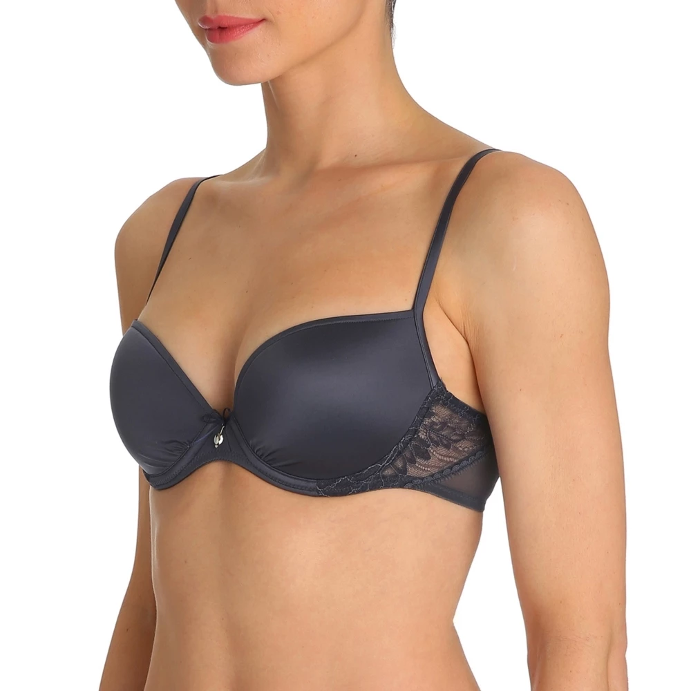 Bei diesem unterlegten BH springt der zierliche Ausschnitt sofort ins Auge. Glatte Cups mit zarten Raffungen, an den Seiten feine Spitze, am Steg ein keckes Schleifchen … Aber auch der Komfort stimmt bei diesem Modell.