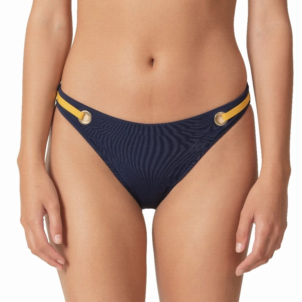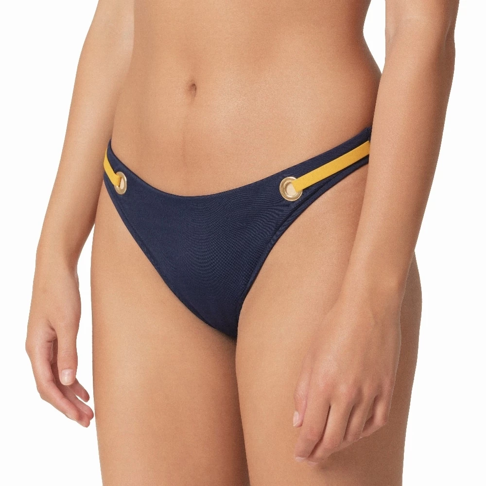 Sexy Bikinihöschen mit verspielten Ringen und ockergelben Schleifen in der Taille.