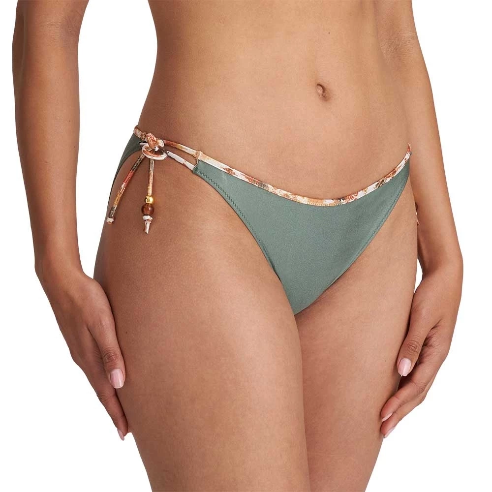 Mit diesem Bikini-Hüftslip mit farbigen Kordeln an den Seiten aus einem glänzenden Stoff sind Sie am Strand immer topmodisch gekleidet.