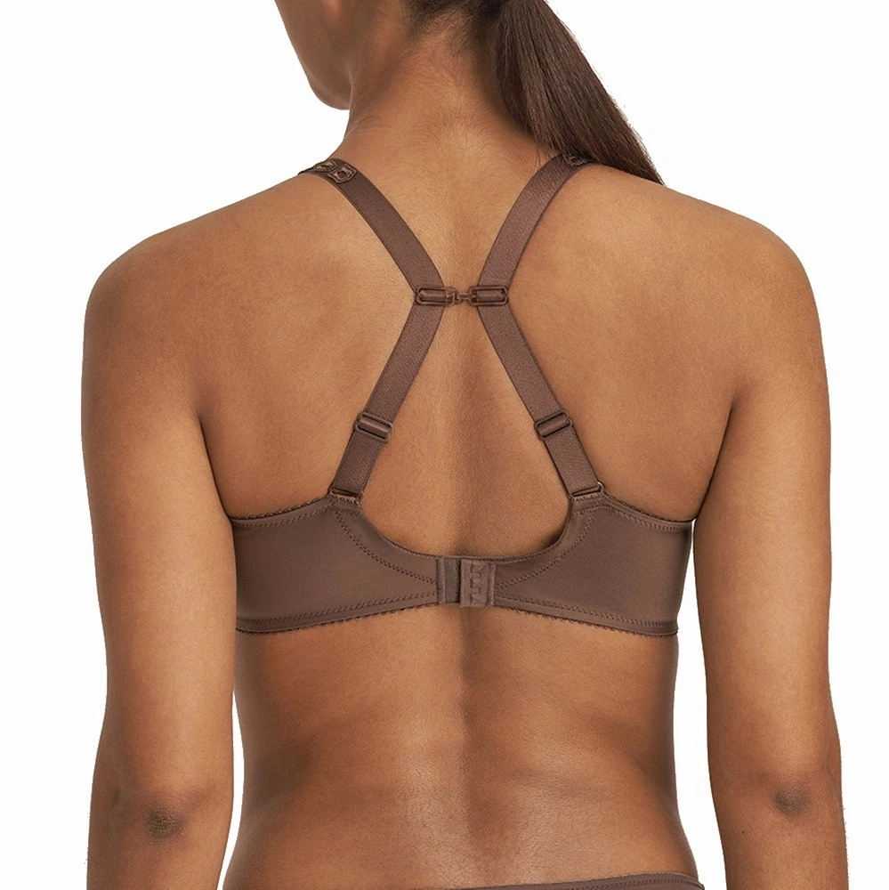 Vollkommen nahtloser Bügel-BH mit glänzender Satinoptik. Die Träger sind mit Guipurestickerei versehen und können gerade oder gekreuzt getragen werden. Ebony ist ein tiefbrauner Hautton mit elegantem Satinglanz.