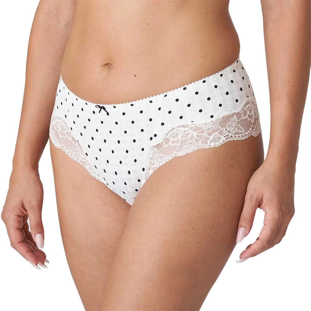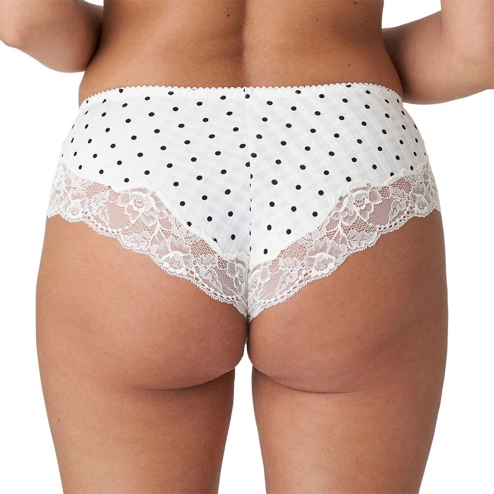 Coco Classic ist ein kokettes, schwarz-weißes Tupfenmuster mit Spitze.