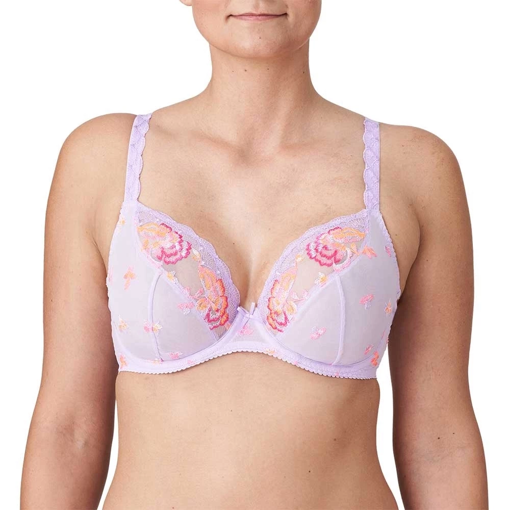 Eine aufregende Optik und reichlich Farbe: Dieser Balconette-BH mit tiefem Ausschnitt vereint diese Merkmale. Er ist aus bedrucktem Voile gefertigt, der in die Träger übergeht. Das Zierelement am Steg bildet das i-Tüpfelchen des Luxus-Looks.