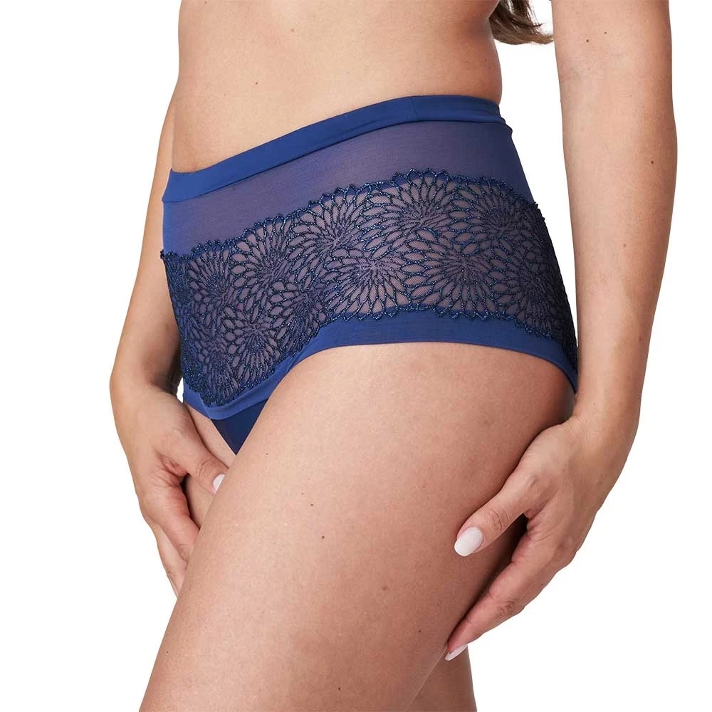 Die Taille sitzt ein wenig höher als bei klassischen Hotpants und bedeckt den Bauch, ohne an Tragekomfort einzubüßen. Der Slip ist mit einem Einsatz aus Netzmaterial versehen, der sich unter der Kleidung nicht abzeichnet.