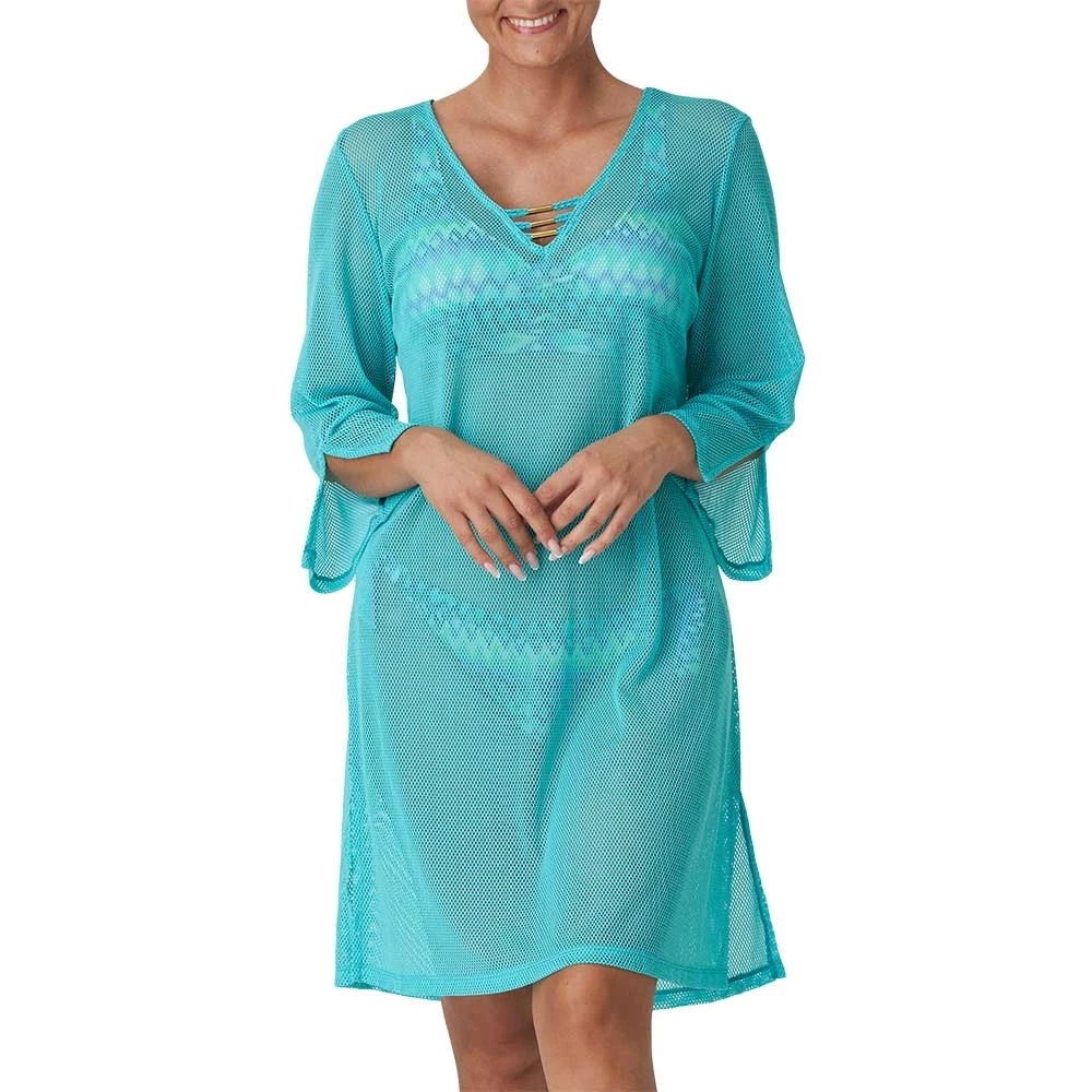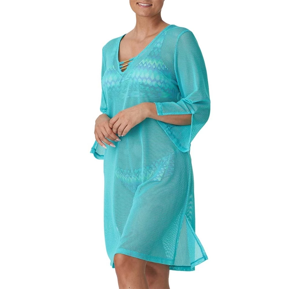 Eleganter Kaftan aus luftigem Netzmaterial, mit langen Ärmeln.