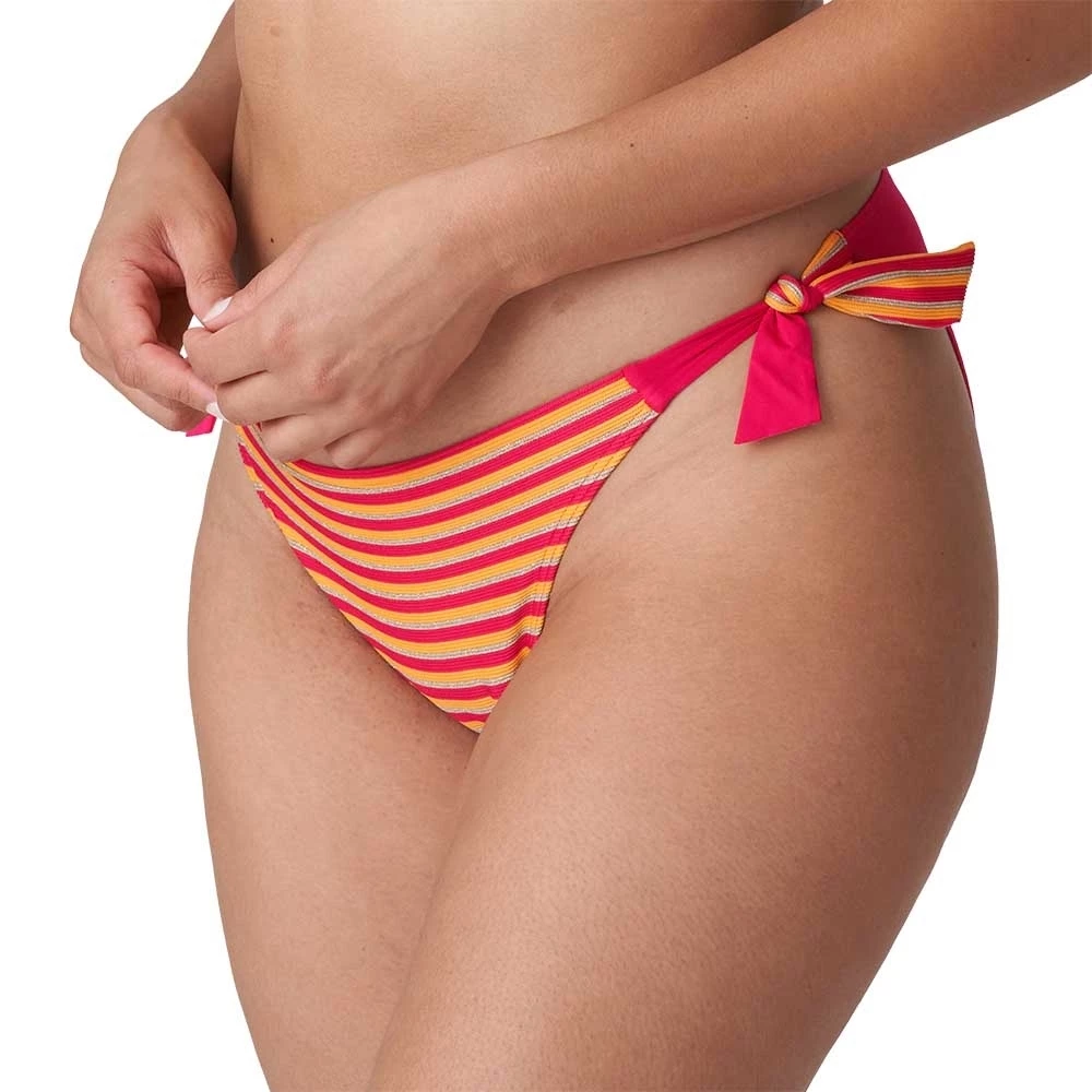 Die Bändchen dieses Hüftslips mit eleganten Streifen können Sie selbst binden, damit der Bikinislip immer perfekt sitzt.
