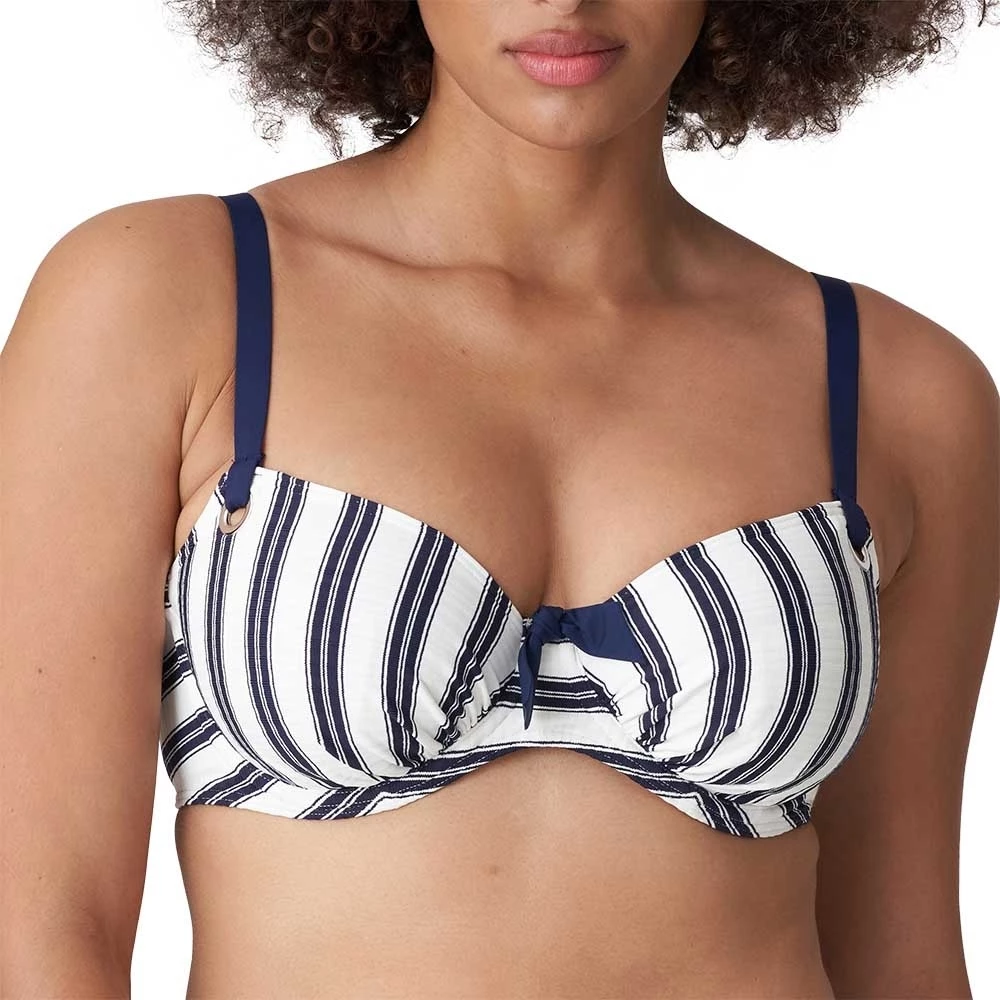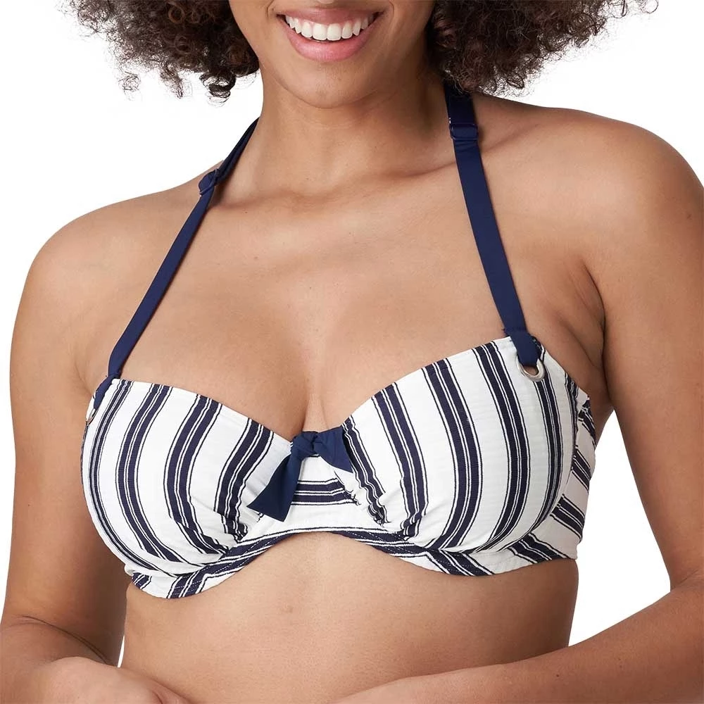 Bikini-Oberteil mit Vollschale im Vintage-Marinelook mit schmeichelhaften Längsstreifen auf einem gerippten Bademodenstoff. Die silberfarbenen Ringe in den Cups, die große Schleife am Steg und die schlichten Träger sorgen für einen angesagten Retro-Strandlook.