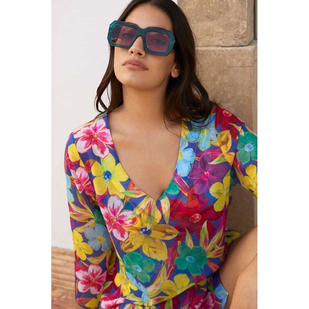 Blue Bloom kombiniert leuchtendes Blau mit sonnigem Pink, Orange und Neonakzenten.