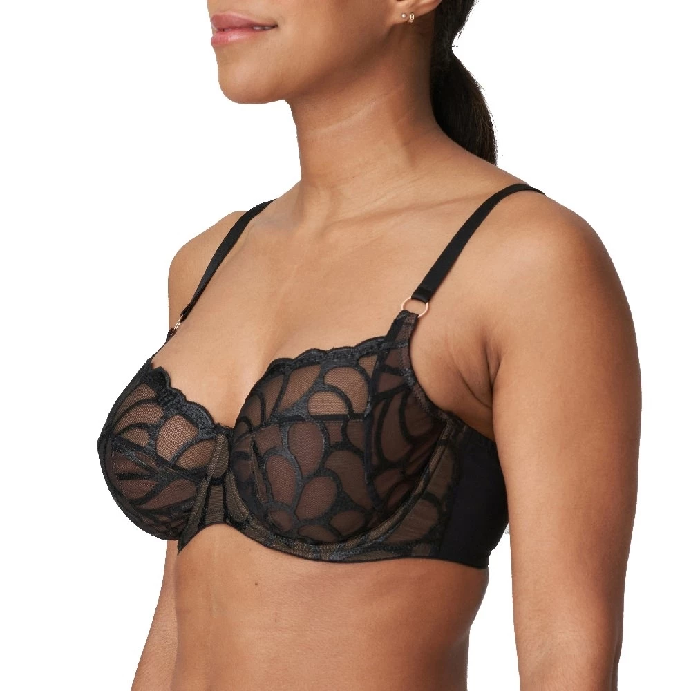 Verführerischer Bügel-BH mit Laserschnitt-Spitze in modischer Leder-Optik. Die Oberseite der Cups ist vollkommen transparent, die Unterseite ist gefüttert.Die Cups heben die Brüste und umschließen sie vollständig. Der Seitensteg zentriert den Busen und kreiert auf diese Weise eine elegante Silhouette.