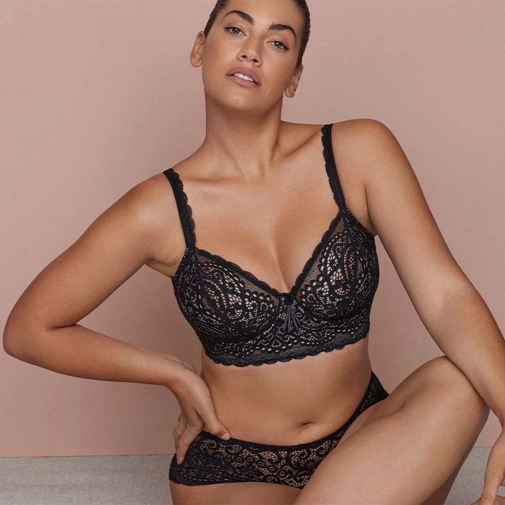 Die raffinierte Optik eines Bralettes mit der bequemen Passform eines Longline-BHs. Die topmodische Allover-Spitze ist leicht transparent – auch an den Cups – und der breite Spitzeneinsatz unter den Cups bringt zusätzlichen Halt.