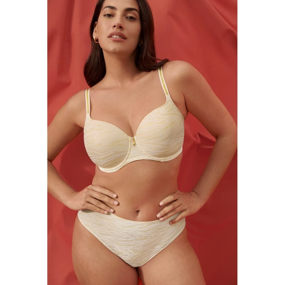 Die festen Cups heben und zentrieren die Brüste und kreieren eine perfekte Rundung. Dieser Schnitt kreiert ein weibliches Dekolleté, auch bei einem leicht schlaffen Busen.