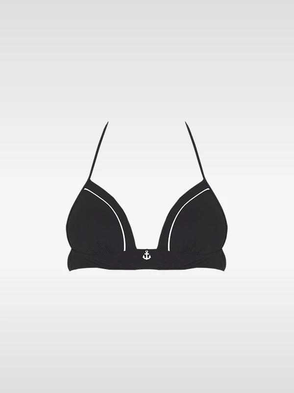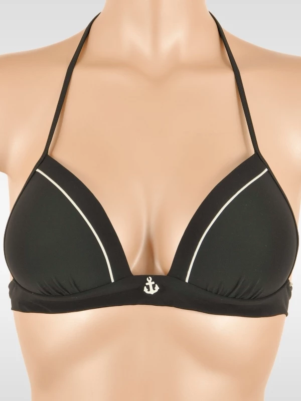 Hübsches Neckholder Bikini-Top in Triangelform. Die eingearbeiteten Push-up-Liquid-Pads sowie die weiße Linienführung zaubern ein tolles Dekolleté.